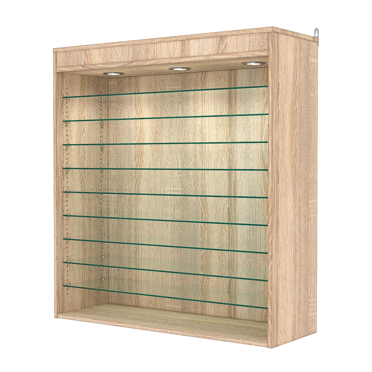 Кол-во полок из стекла 6мм: 9шт, расстояние между которыми 81м, глубина полок 254мм;