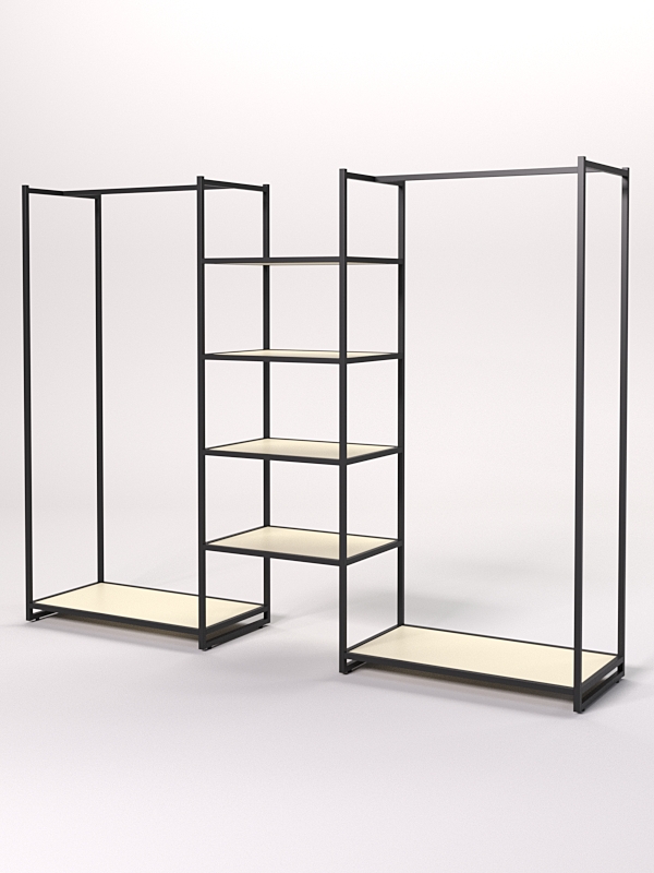 Такая конструкция подойдет для использования в магазинах одежды. Она будет особенно актуальна для магазинов в стиле лофт или для тех, кто хочет добавить индустриальную нотку в свой интерьер.