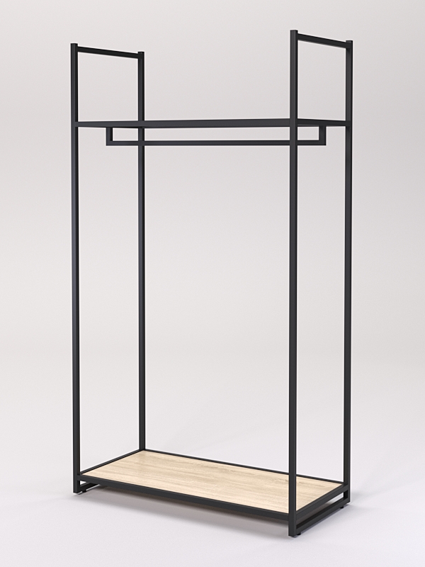 Стеллаж для одежды. Стеллаж обеспечивает надежное хранение одежды, а также привлекает внимание покупателей своим оригинальным дизайном. Штанга для вешалок позволяет удобно разместить товар, а полка из ЛДСП предоставляет дополнительное пространство для хранения аксессуаров и обуви.