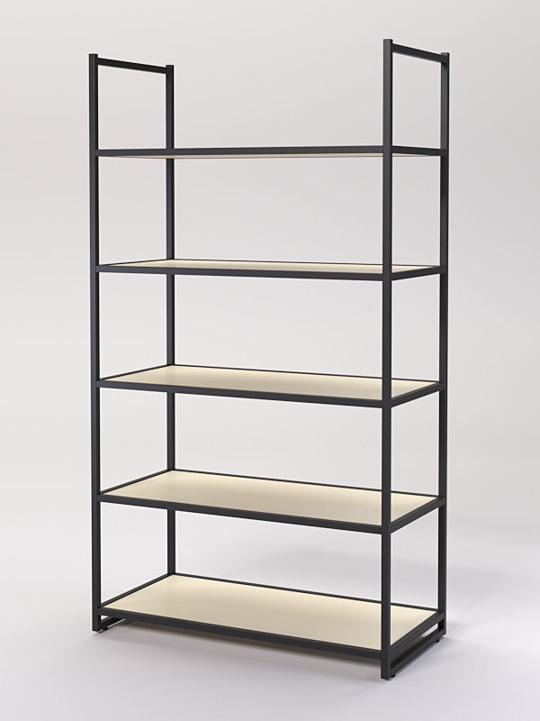 Стеллаж для одежды. Стеллаж обеспечивает надежное хранение одежды, а также привлекает внимание покупателей своим оригинальным дизайном. Изделие оснащено пятью полками из ЛДСП предоставляет пространство для демонстрации одежды, аксессуаров и обуви.