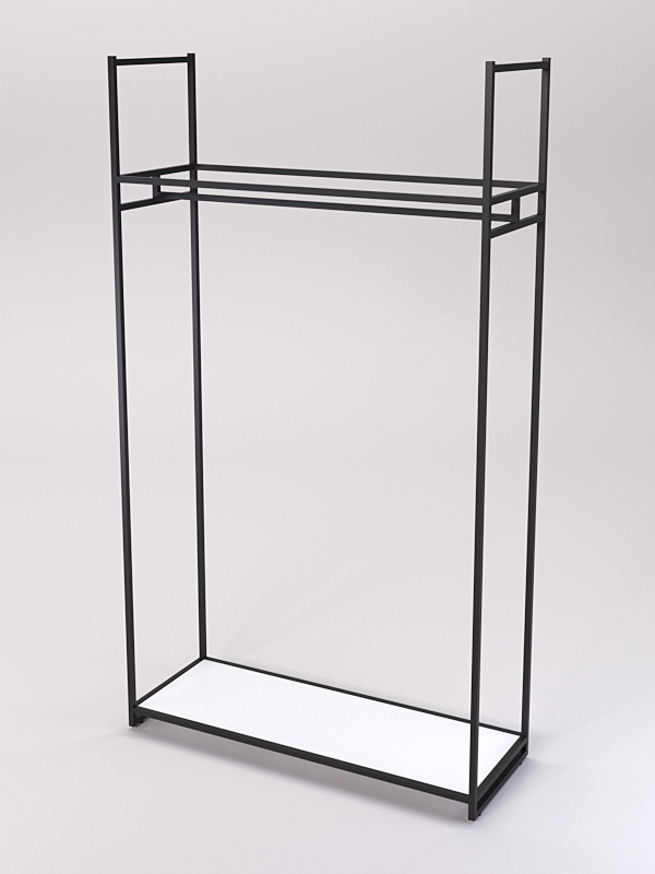 Модель оснащена штангой с кронштейном для вешалок. На вешалках можно размещать любую одежду, которую удобно демонстрировать в подвешенном состоянии. Например, платья, блузки, рубашки, куртки, пальто, брюки, юбки и т.д.