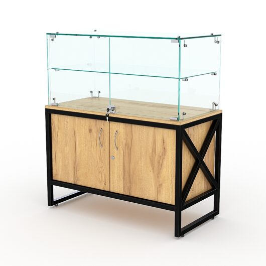Торговый стеклянный прилавок «ЛОФТ СТИЛЬ» №101 (с дверками)