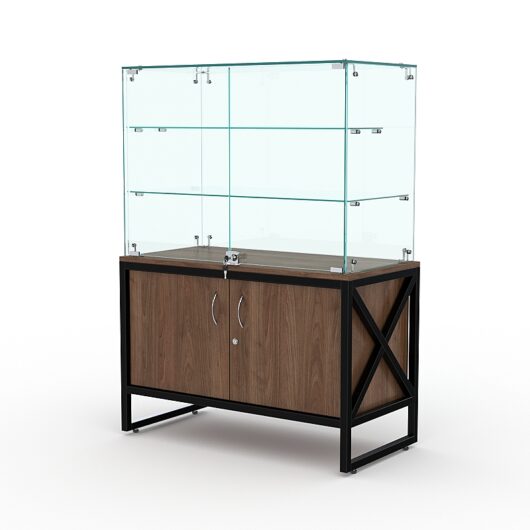 Торговый стеклянный прилавок «ЛОФТ СТИЛЬ» №107 (с дверками)