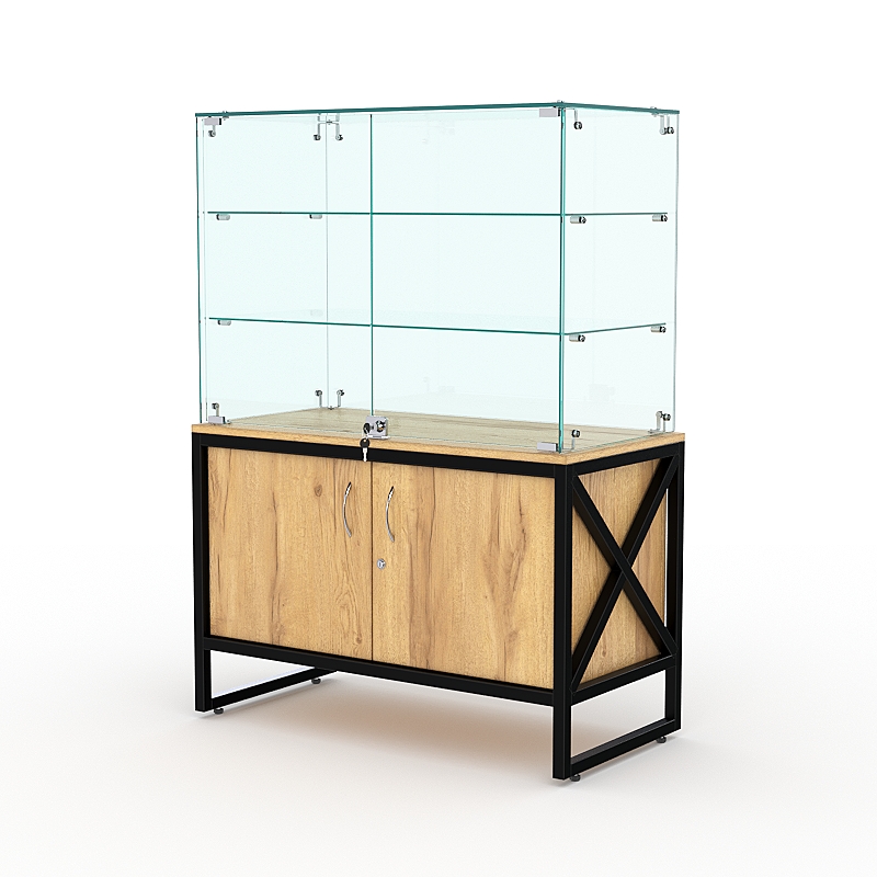 Торговый стеклянный прилавок ЛОФТ СТИЛЬ №127 (с дверками), Дуб Золотистый