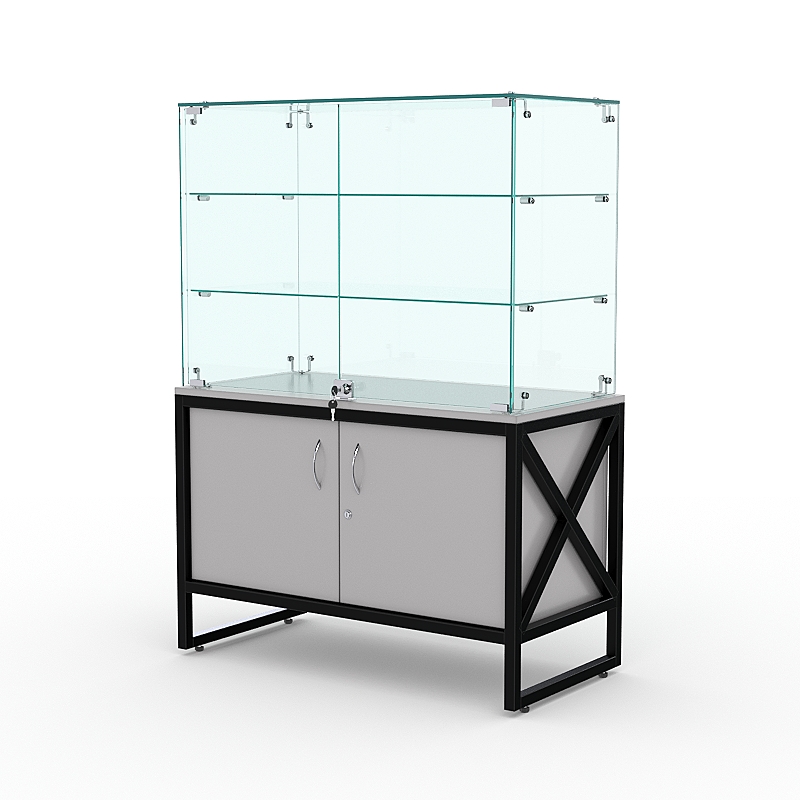 Торговый стеклянный прилавок "ЛОФТ СТИЛЬ" №127 (с дверками), Серый