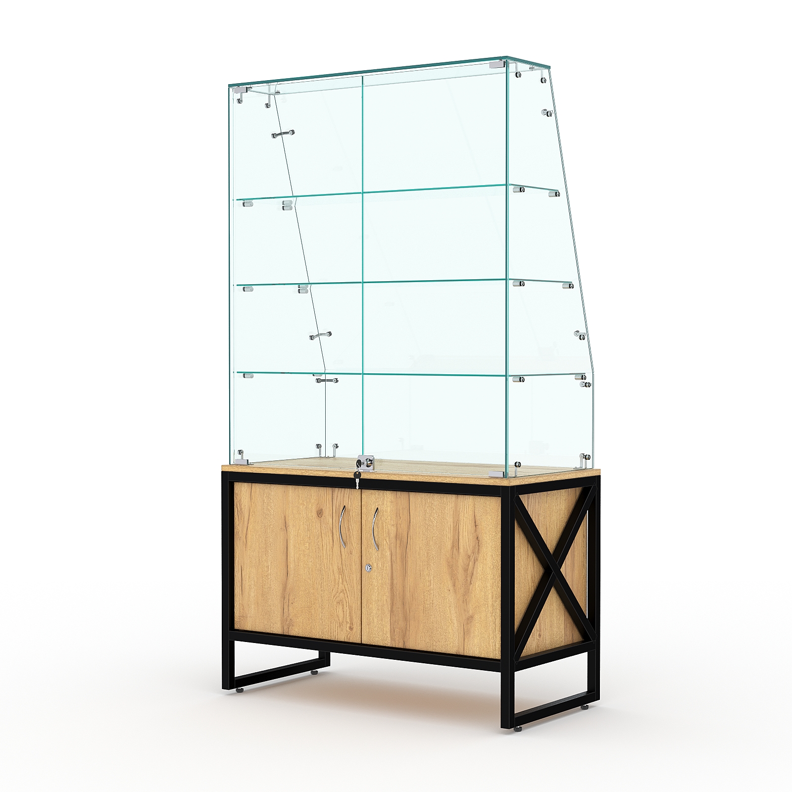 Торговый стеклянный прилавок "ЛОФТ СТИЛЬ" №115 (с дверками), Дуб Золотистый