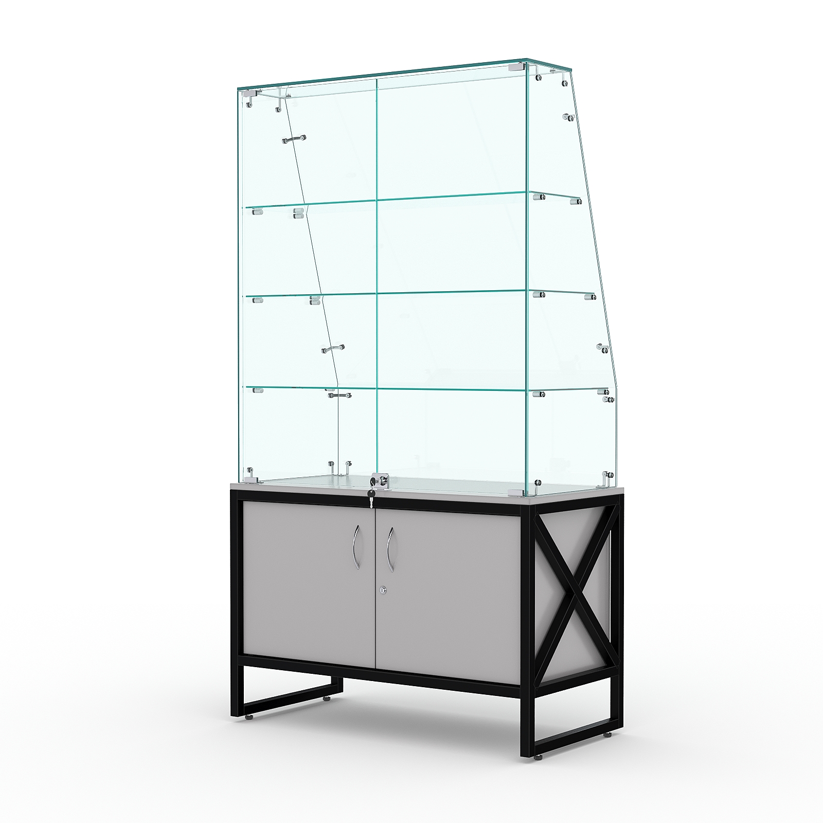 Торговый стеклянный прилавок "ЛОФТ СТИЛЬ" №115 (с дверками), Серый