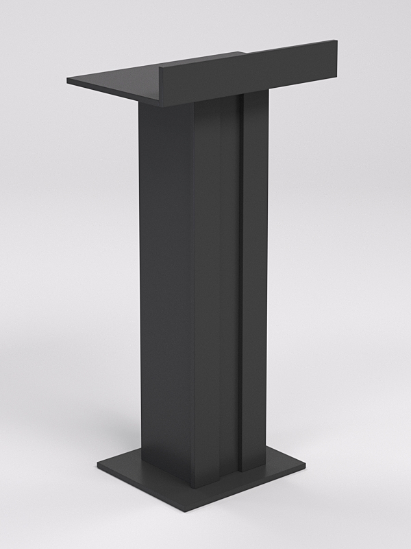 Конструкция оснащена столешницей перегородкой, за которой удобно расположить бумаги, микрофон и другие материалы для выступления. Внутри имеется полка, где можно расположить сопутствующие предметы для выступления.