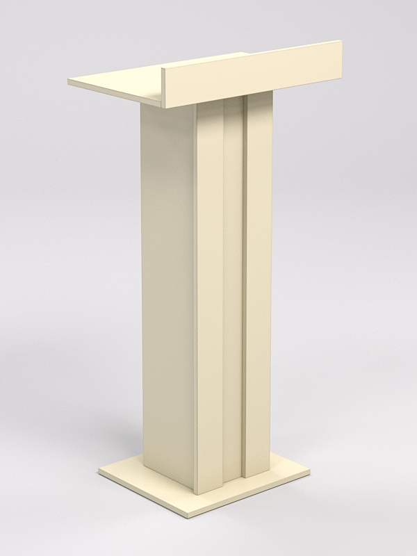 Конструкция оснащена столешницей перегородкой, за которой удобно расположить бумаги, микрофон и другие материалы для выступления. Внутри имеется полка, где можно расположить сопутствующие предметы для выступления.