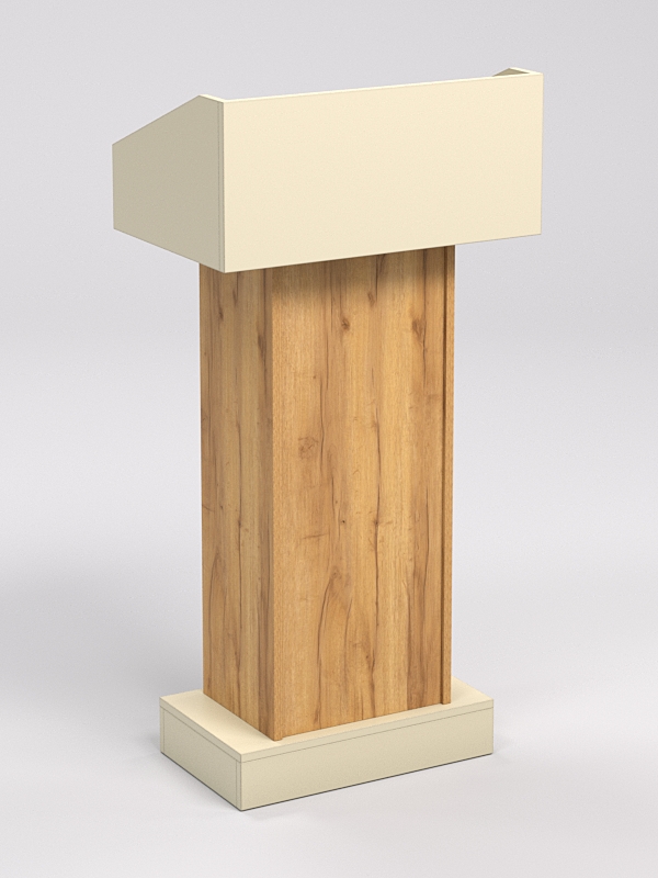 Имеется столешница с бортиком, где удобно расположить бумаги, микрофон и другие материалы для выступления. Внутри имеется полка, где также можно положить различные предметы для выступления спикера.