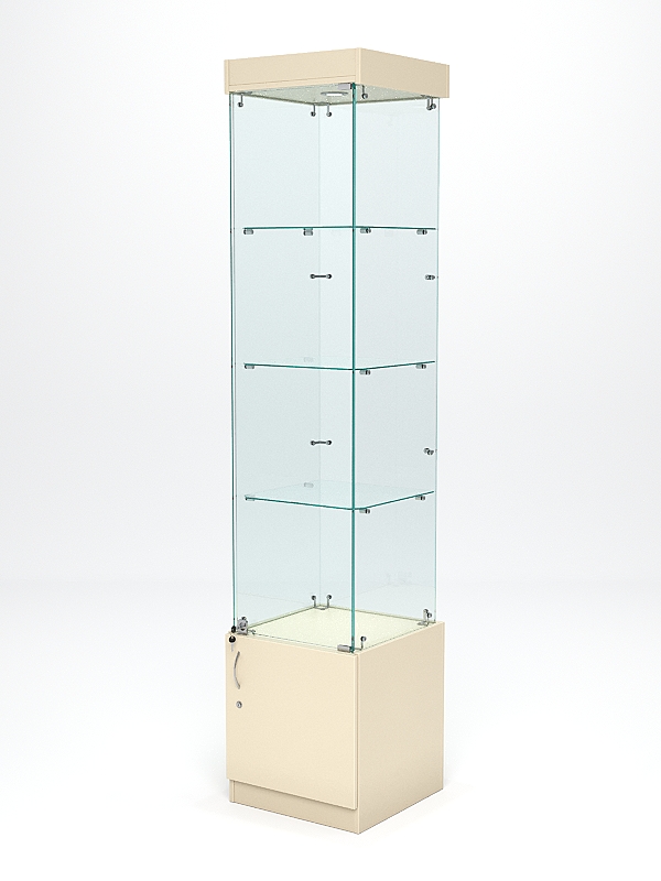 Стеклянная витрина — это конструкция из стекла, которая служит для демонстрации товаров в магазине, торговом центре или другом коммерческом объекте. Имеется три стеклянные полки. В верхней части оснащена подсветка. В нижней части тумба-накопитель.
