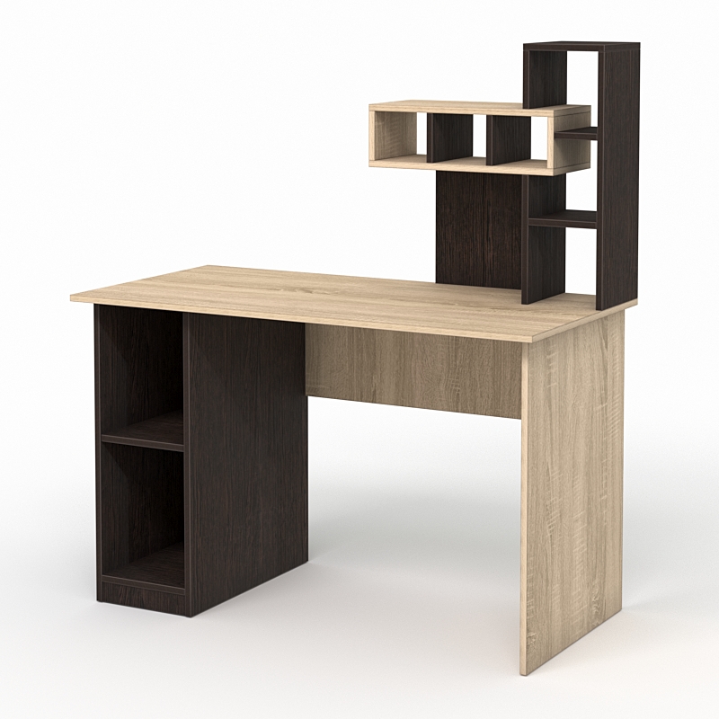 Письменно компьютерный стол с ящиками. Стол предназначен как для работы с компьютерной техникой, так и для письменных работ и аналогичных занятий сидя. Так же на нем можно хранить личные вещи.