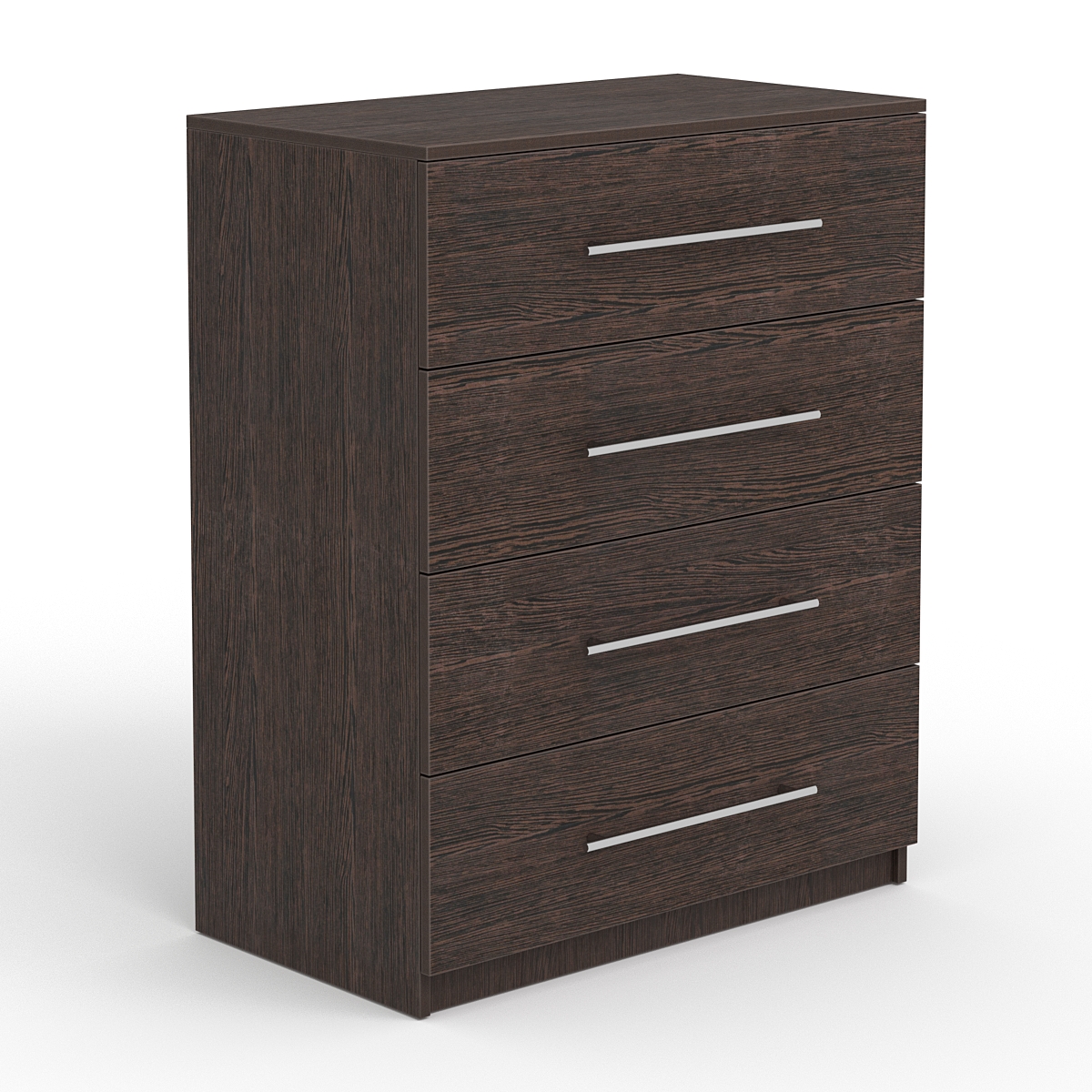 • Эффективное хранение: Комод оснащен четырьмя выдвижными ящиками с лаконичными серебристыми ручками, что позволяет удобно организовать пространство и легко находить необходимые предметы.