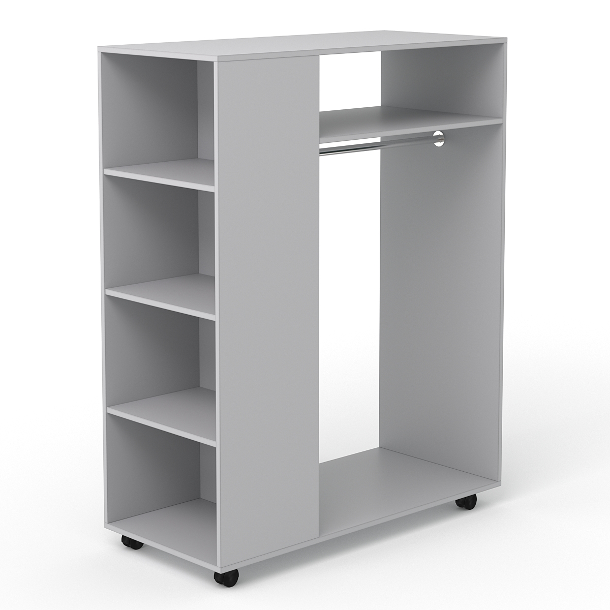 - Отделение для вешалок: Стеллаж дополнительно оснащен отделением со штангой для вешалок, что добавляет ему функциональности.