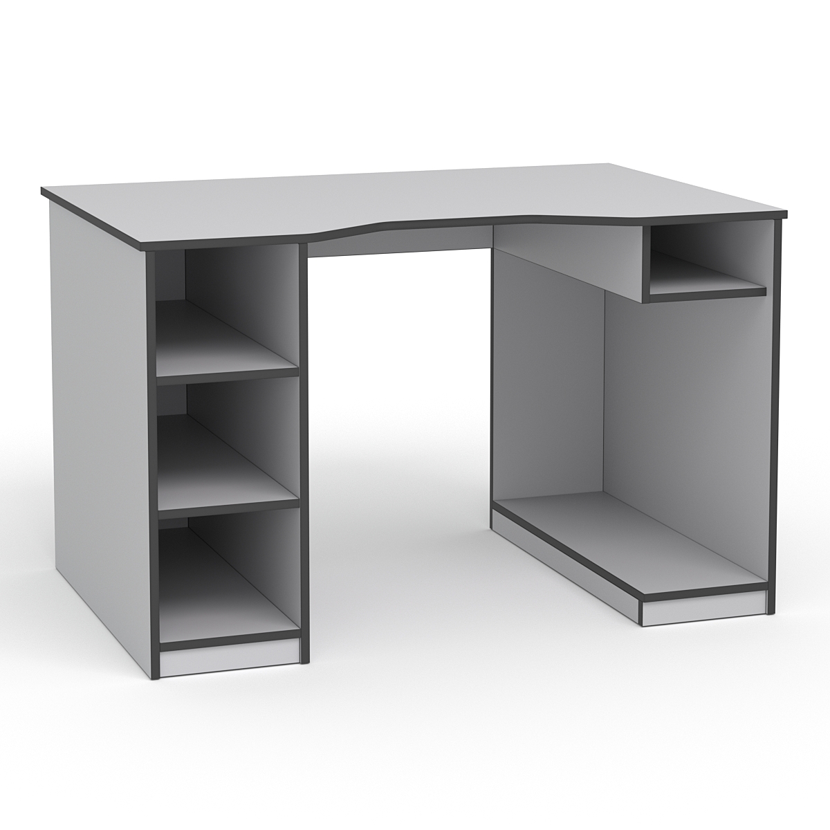 - Вместительные полки: Стол имеет открытые полки, которые идеально подходят для хранения документов, канцелярских принадлежностей и других предметов, обеспечивая быстрый доступ к ним.