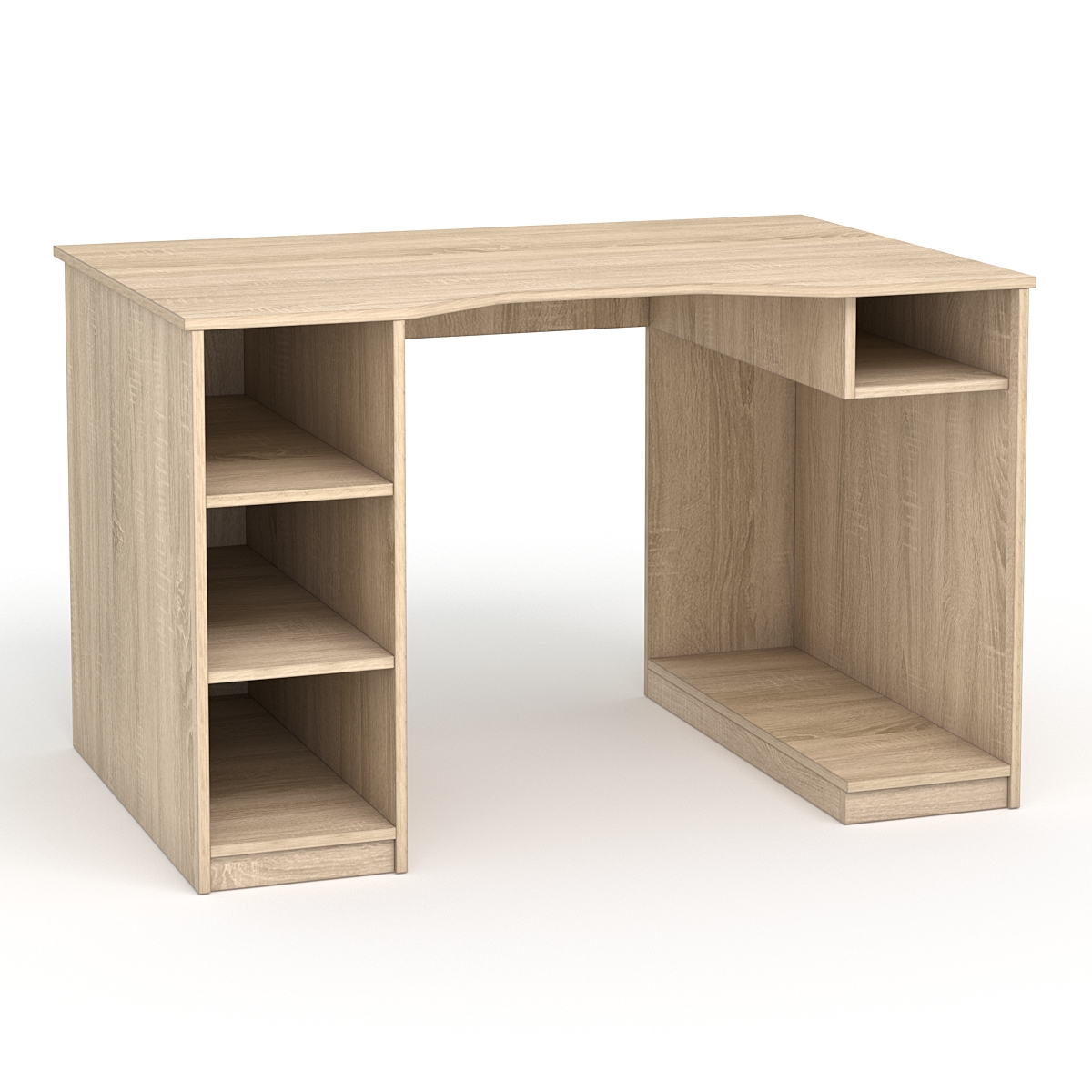 - Вместительные полки: Стол имеет открытые полки, которые идеально подходят для хранения документов, канцелярских принадлежностей и других предметов, обеспечивая быстрый доступ к ним.