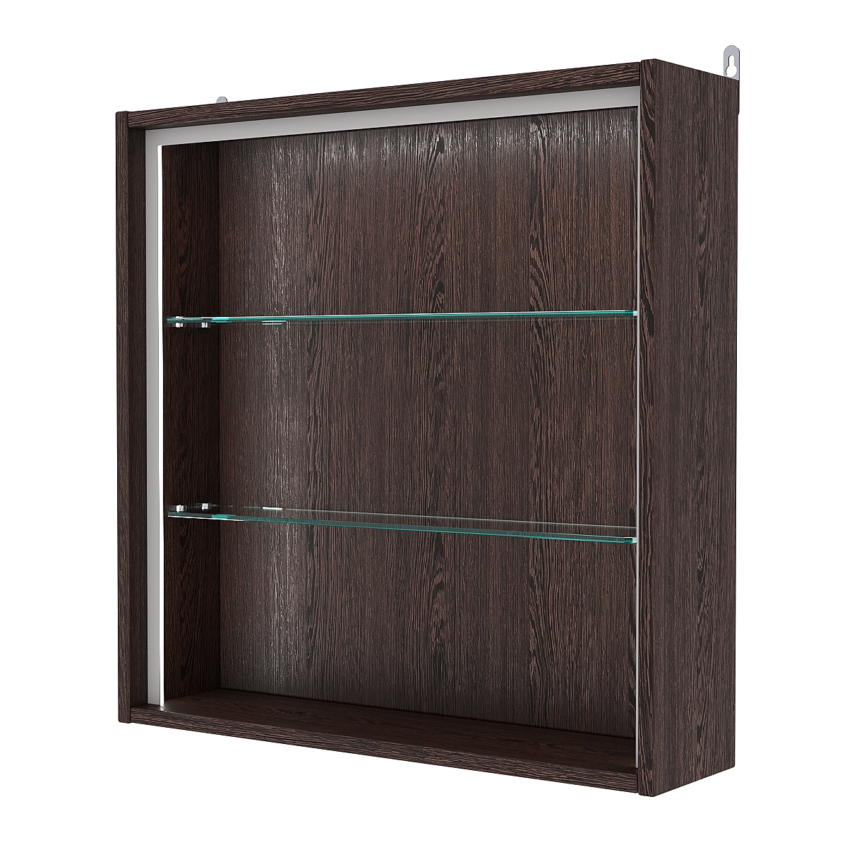 Кол-во полок из стекла 5 мм: 2 шт., расстояние между которыми 185 мм, глубина 97 мм;