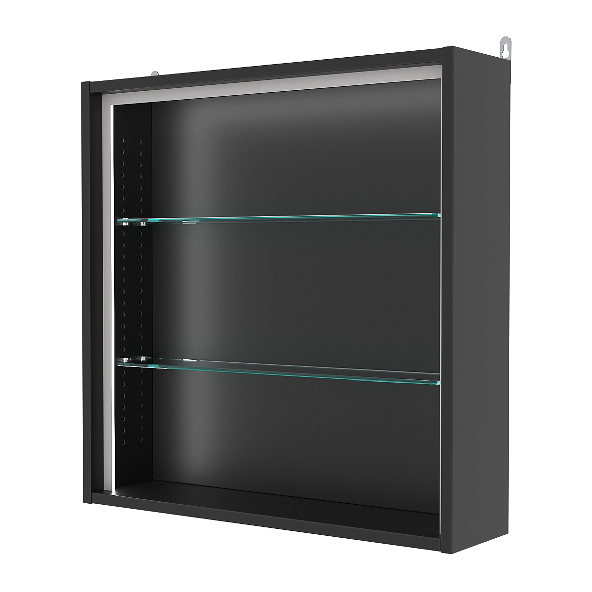 Кол-во полок из стекла 5 мм: 2 шт., расстояние между которыми 185 мм, глубина 97 мм;