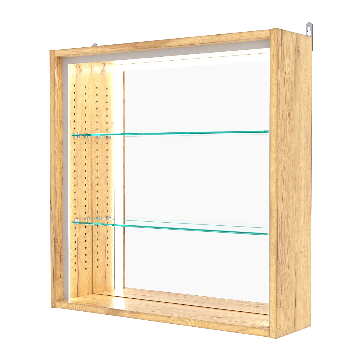 Кол-во полок из стекла 5 мм: 2 шт., расстояние между которыми 185 мм, глубина 97 мм;