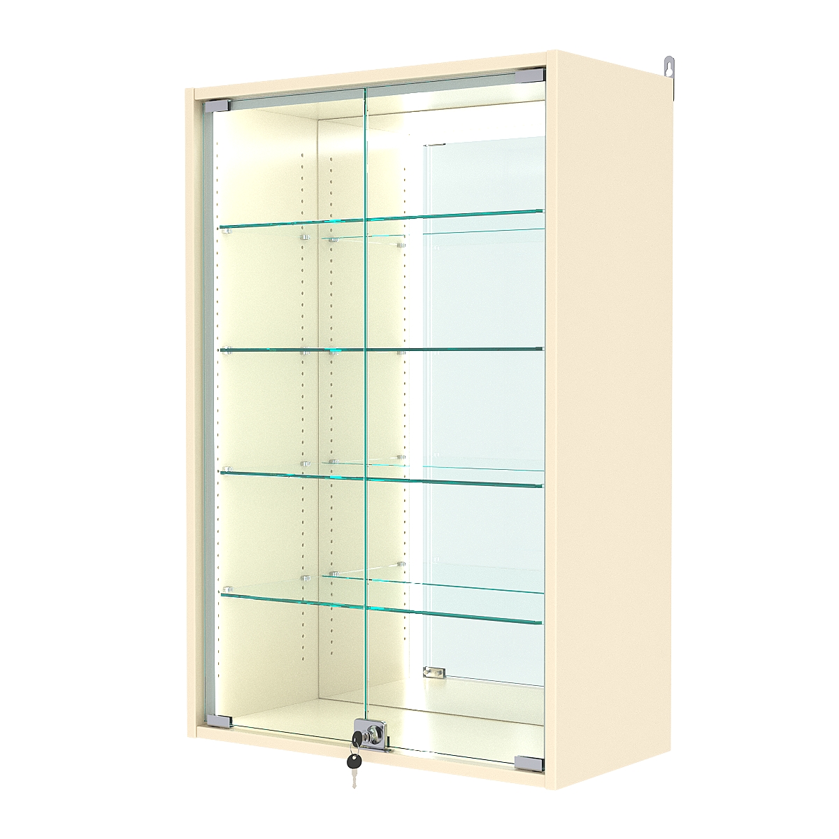 Витрина настенная с регулировочными полками №2-2АГ-РЕГ-П с зеркалом, Крем Вайс