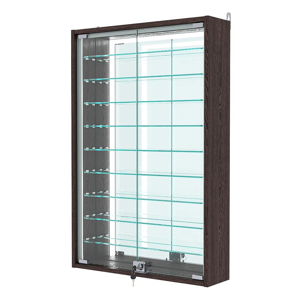 Витрины настенные представляют собой отличный вариант качественных, а главное лёгких конструкций. Собираются в течение 30 минут, монтируются на любую вертикальную поверхность. Специальных навыков при сборке не требуется. Отлично подходят для демонстрации мелких товаров, таких как: бижутерия, брелоки, модели машинок, статуэтки и прочая сувенирная продукция.
