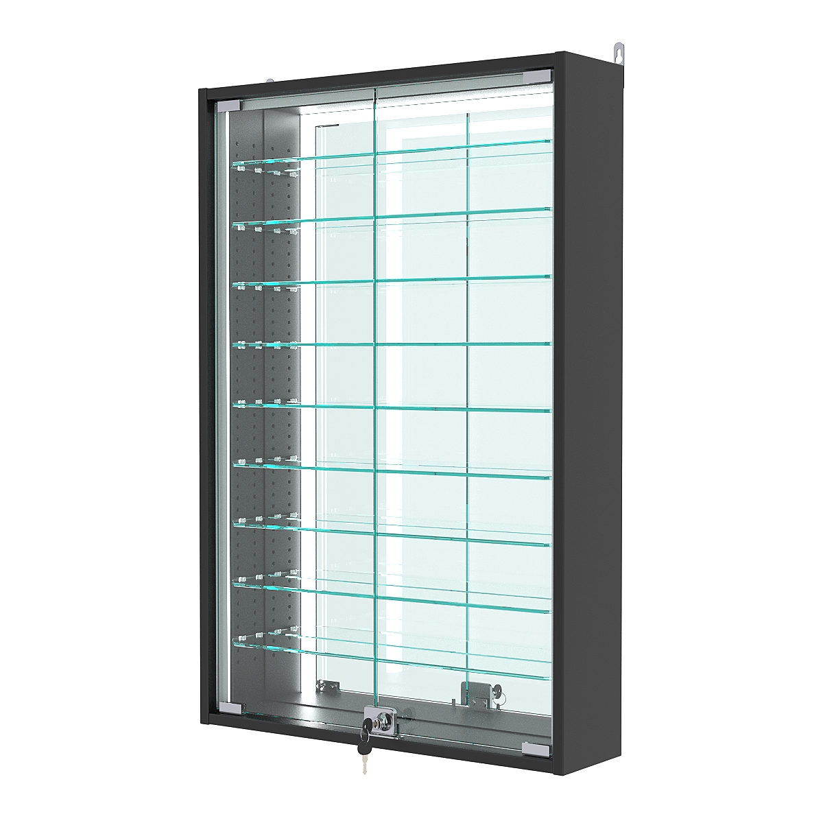 Витрина настенная с регулировочными полками №2-6А-РЕГ-П с зеркалом, Черный