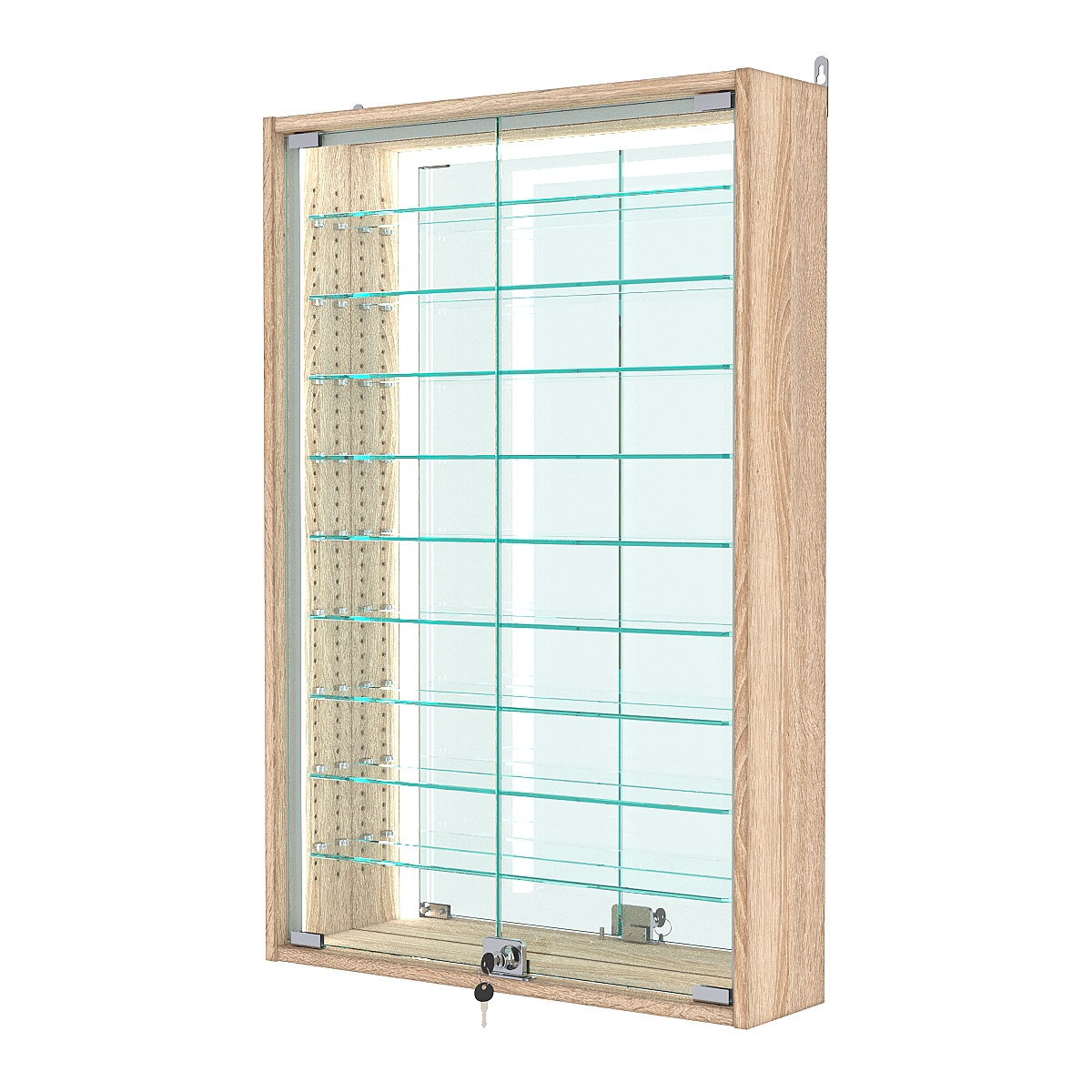 Витрины настенные представляют собой отличный вариант качественных, а главное лёгких конструкций. Собираются в течение 30 минут, монтируются на любую вертикальную поверхность. Специальных навыков при сборке не требуется. Отлично подходят для демонстрации мелких товаров, таких как: бижутерия, брелоки, модели машинок, статуэтки и прочая сувенирная продукция. Есть функция регулировки полок.