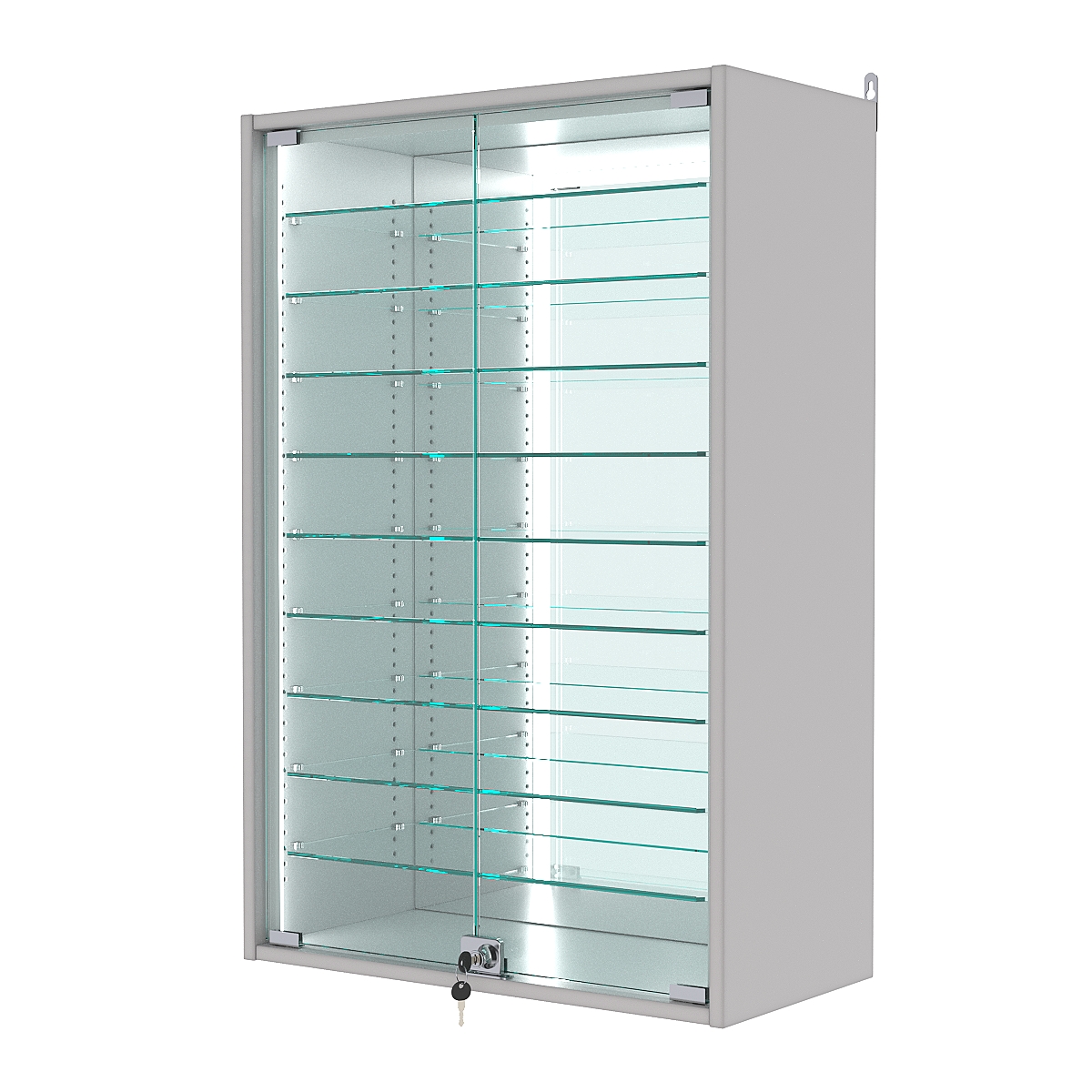 Витрина настенная с регулировочными полками №2-6АГ-РЕГ-П с зеркалом, Серый