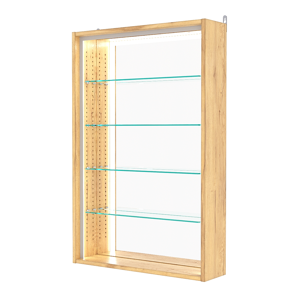 Витрина настенная с регулировочными полками №2-2Г-РЕГ-П с зеркалом, Дуб Золотистый