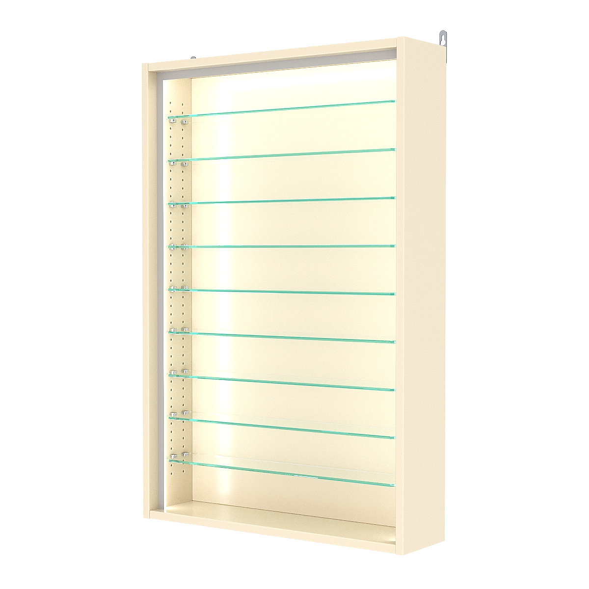 Витрины настенные представляют собой отличный вариант качественных, а главное лёгких конструкций. Собираются в течение 30 минут, монтируются на любую вертикальную поверхность. Специальных навыков при сборке не требуется. Отлично подходят для демонстрации мелких товаров, таких как: бижутерия, брелоки, модели машинок, статуэтки и прочая сувенирная продукция. Есть функция регулировки полок.