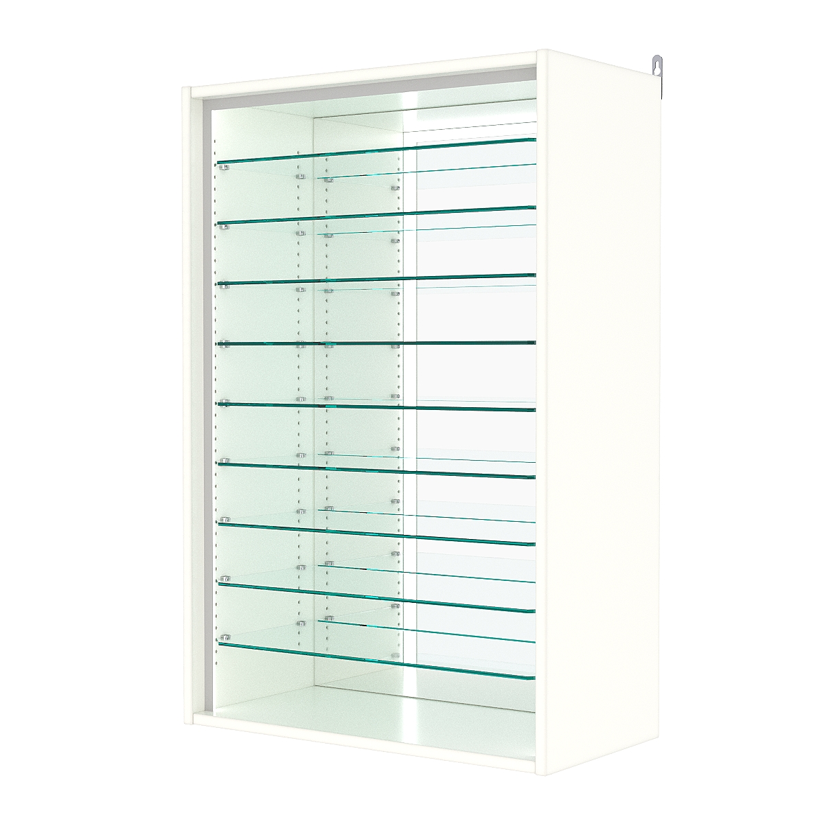 Витрины настенные представляют собой отличный вариант качественных, а главное лёгких конструкций. Собираются в течение 30 минут, монтируются на любую вертикальную поверхность. Специальных навыков при сборке не требуется. Отлично подходят для демонстрации мелких товаров, таких как: бижутерия, брелоки, модели машинок, статуэтки и прочая сувенирная продукция. Есть функция регулировки полок.