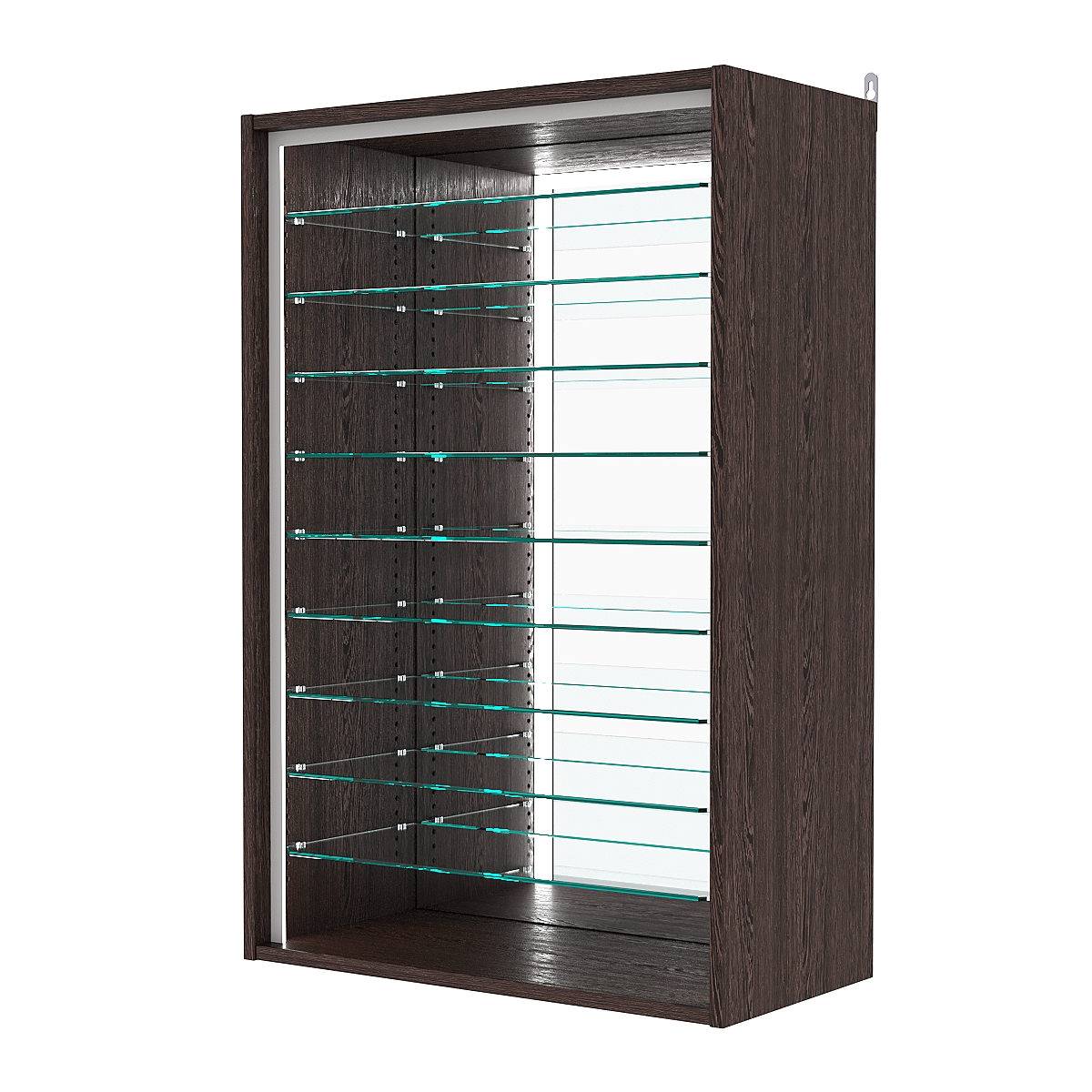 Кол-во полок из стекла 6мм: 9шт, расстояние между которыми 81мм, глубина полок 254мм;