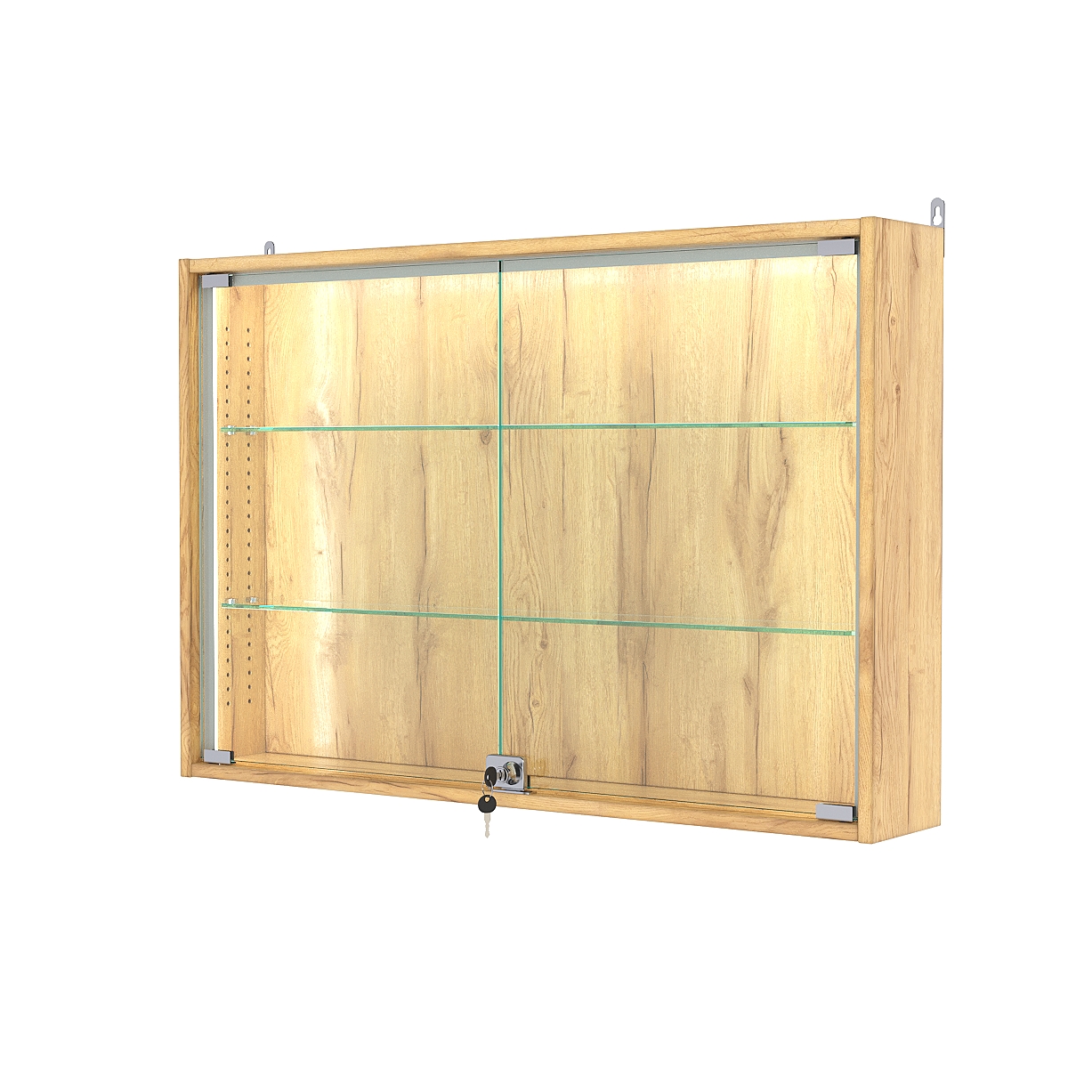 Витрины настенные представляют собой отличный вариант качественных, а главное лёгких конструкций. Собираются в течение 30 минут, монтируются на любую вертикальную поверхность. Специальных навыков при сборке не требуется. Отлично подходят для демонстрации мелких товаров, таких как: бижутерия, брелоки, модели машинок, статуэтки и прочая сувенирная продукция. Есть функция регулировки полок.