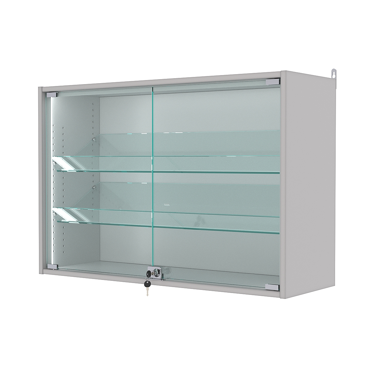 Витрины настенные представляют собой отличный вариант качественных, а главное лёгких конструкций. Собираются в течение 30 минут, монтируются на любую вертикальную поверхность. Специальных навыков при сборке не требуется. Отлично подходят для демонстрации мелких товаров, таких как: бижутерия, брелоки, модели машинок, статуэтки и прочая сувенирная продукция. Есть функция регулировки полок.