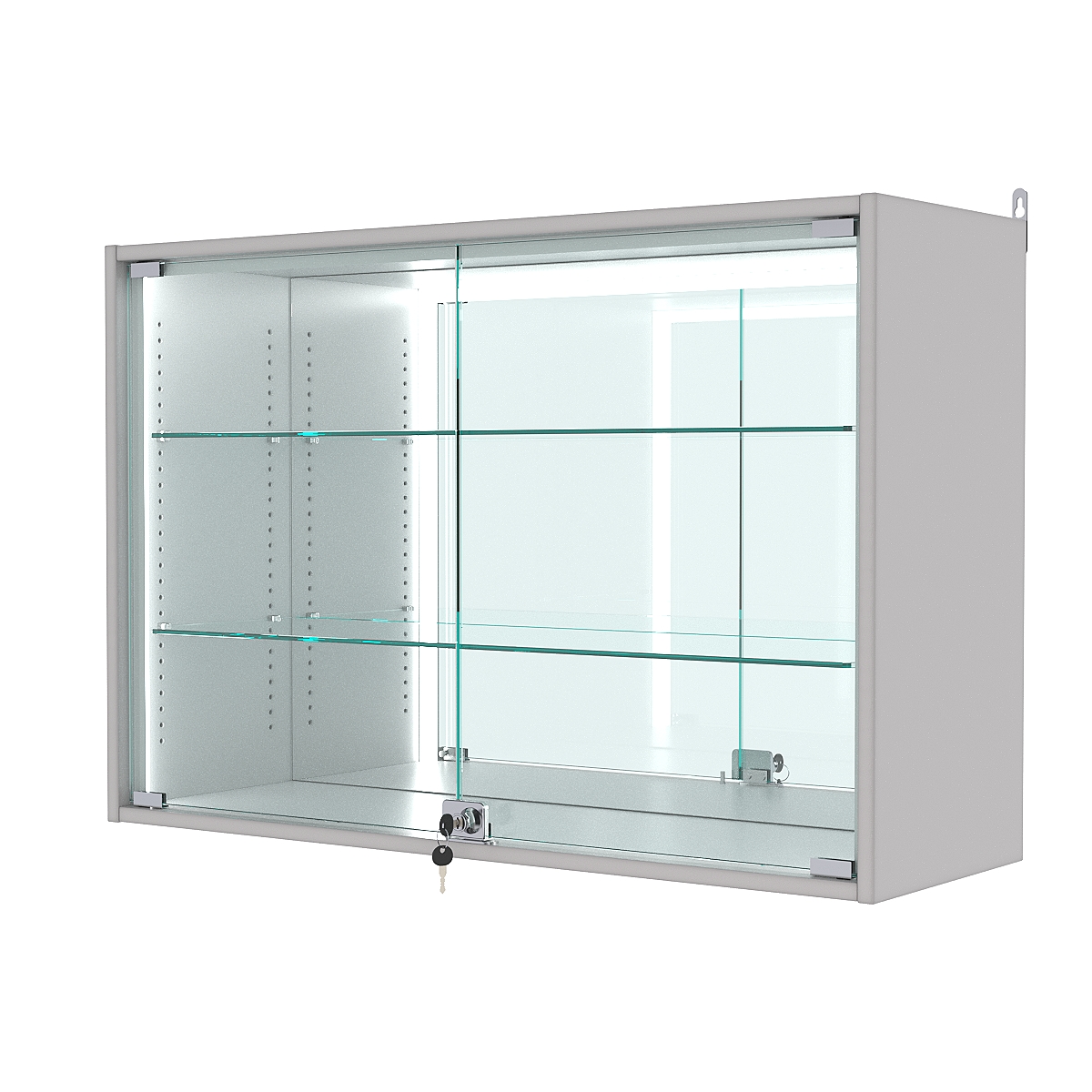 Витрины настенные представляют собой отличный вариант качественных, а главное лёгких конструкций. Собираются в течение 30 минут, монтируются на любую вертикальную поверхность. Специальных навыков при сборке не требуется. Отлично подходят для демонстрации мелких товаров, таких как: бижутерия, брелоки, модели машинок, статуэтки и прочая сувенирная продукция. Есть функция регулировки полок.