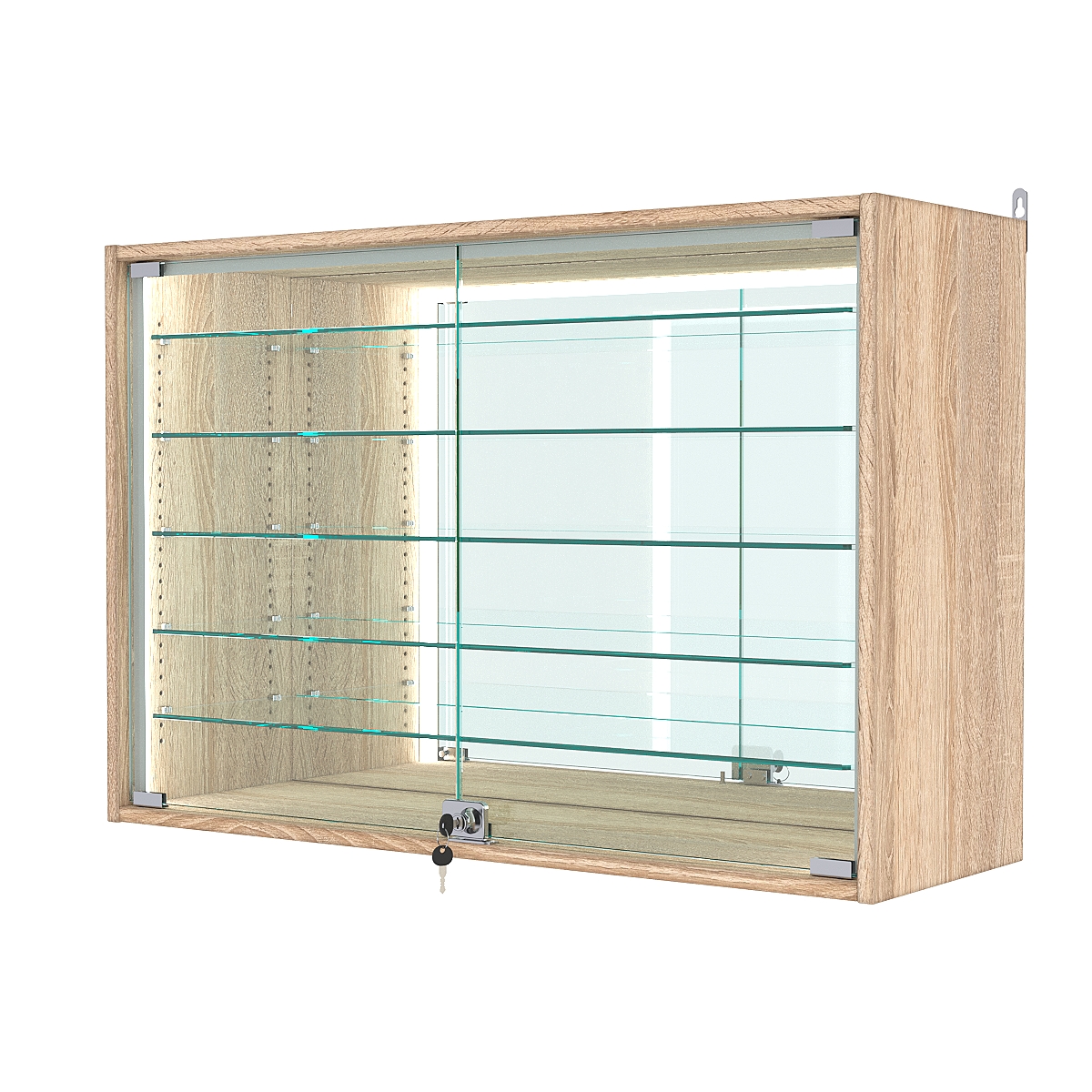 Витрины настенные представляют собой отличный вариант качественных, а главное лёгких конструкций. Собираются в течение 30 минут, монтируются на любую вертикальную поверхность. Специальных навыков при сборке не требуется. Отлично подходят для демонстрации мелких товаров, таких как: бижутерия, брелоки, модели машинок, статуэтки и прочая сувенирная продукция. Есть функция регулировки полок.