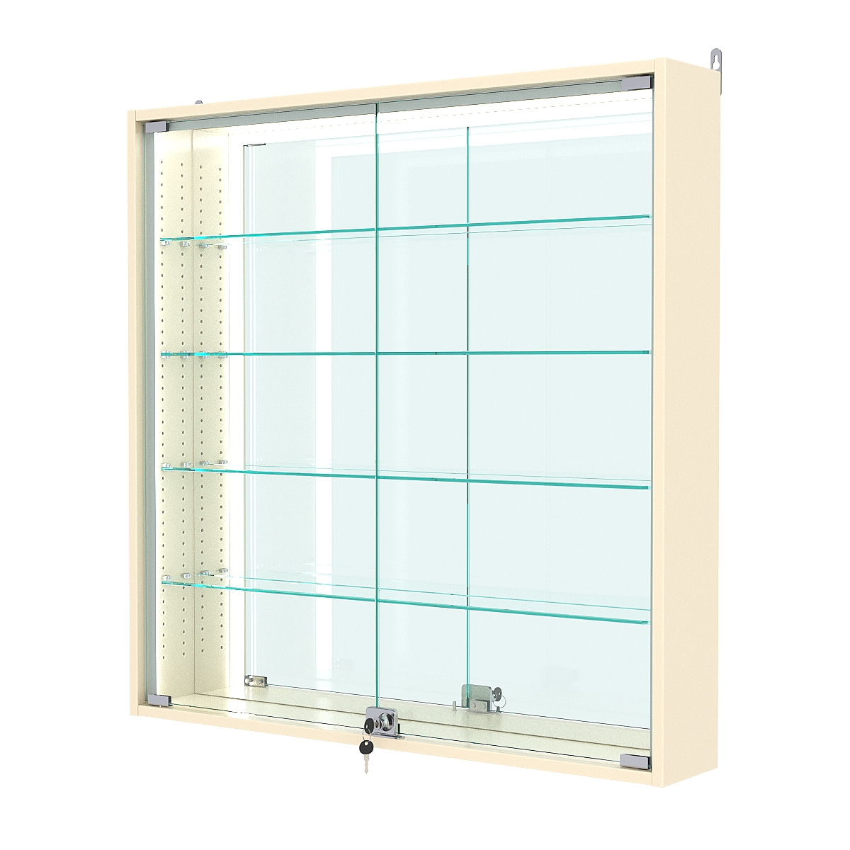Витрина настенная с регулировочными полками №4-2А-РЕГ-П с зеркалом, Крем Вайс
