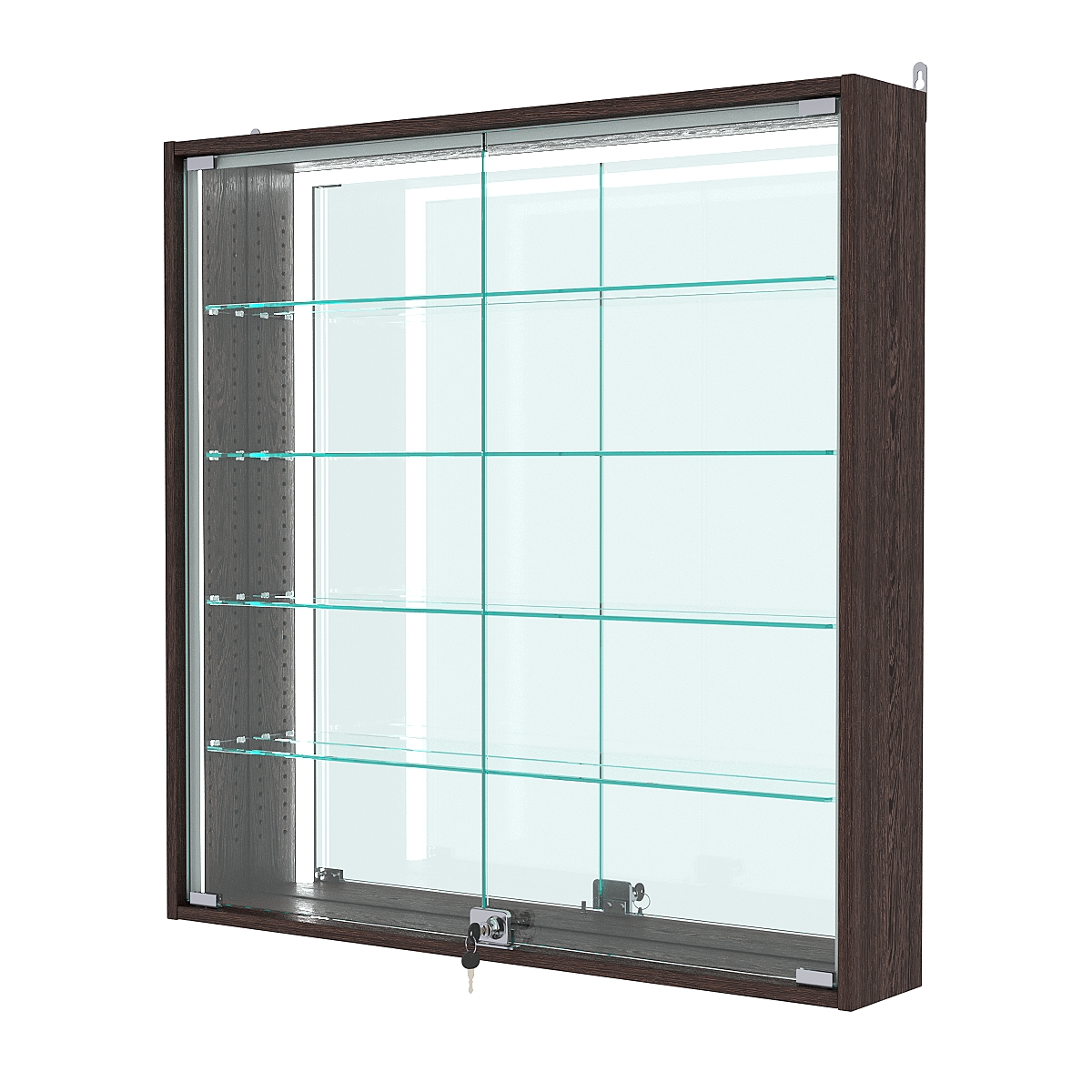 Витрины настенные представляют собой отличный вариант качественных, а главное лёгких конструкций. Собираются в течение 30 минут, монтируются на любую вертикальную поверхность. Специальных навыков при сборке не требуется. Отлично подходят для демонстрации мелких товаров, таких как: бижутерия, брелоки, модели машинок, статуэтки и прочая сувенирная продукция. Есть функция регулировки полок.
