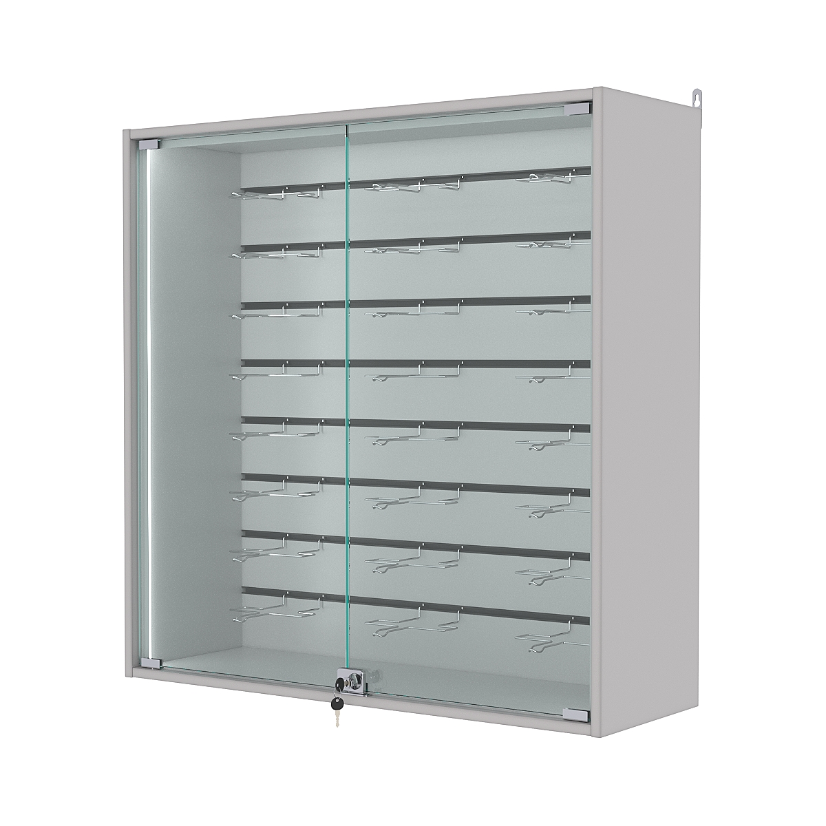 Витрины настенные представляют собой отличный вариант качественных, а главное лёгких конструкций. Собираются в течение 30 минут, монтируются на любую вертикальную поверхность. Специальных навыков при сборке не требуется. Отлично подходят для демонстрации мелких товаров, таких как: бижутерия, брелоки, модели машинок, статуэтки и прочая сувенирная продукция.