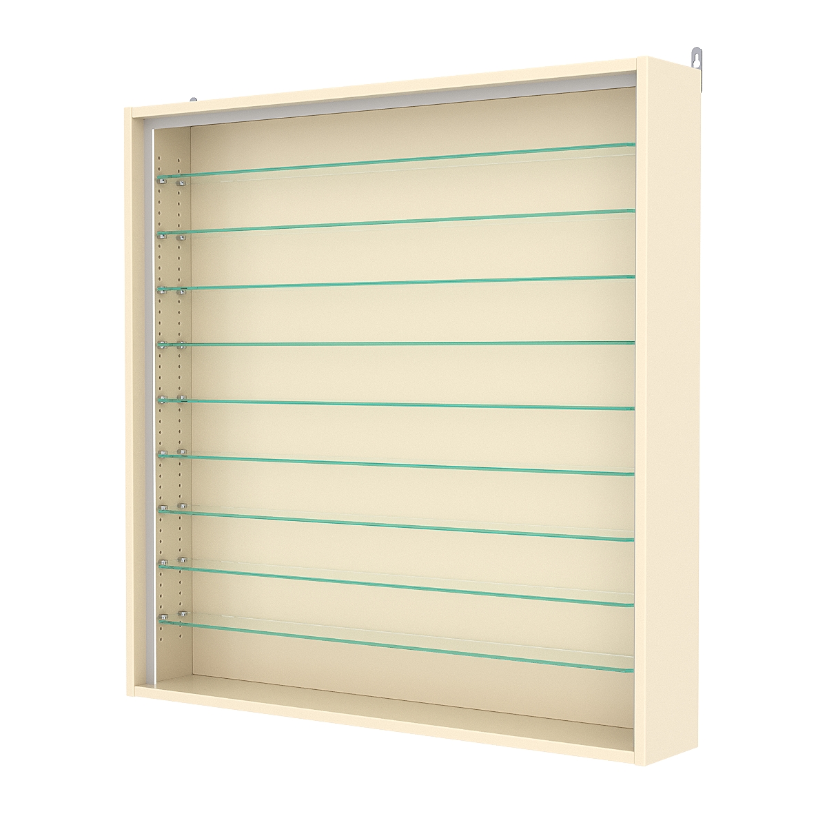 Витрины настенные представляют собой отличный вариант качественных, а главное лёгких конструкций. Собираются в течение 30 минут, монтируются на любую вертикальную поверхность. Специальных навыков при сборке не требуется. Отлично подходят для демонстрации мелких товаров, таких как: бижутерия, брелоки, модели машинок, статуэтки и прочая сувенирная продукция. Есть функция регулировки полок.