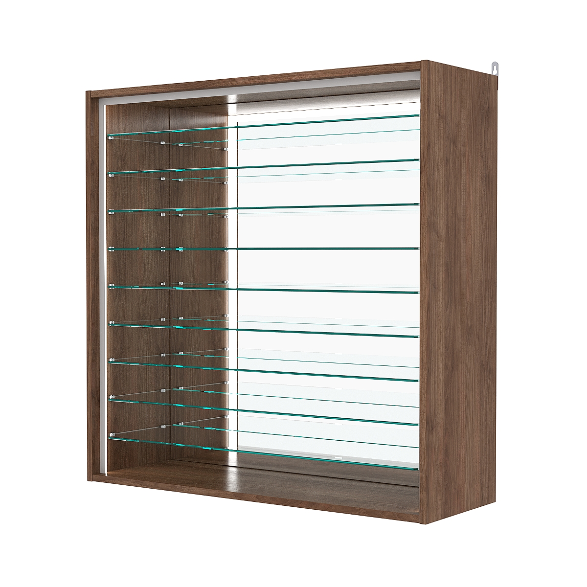 Кол-во полок из стекла 6мм: 9шт, расстояние между которыми 81мм, глубина пполок 254мм;