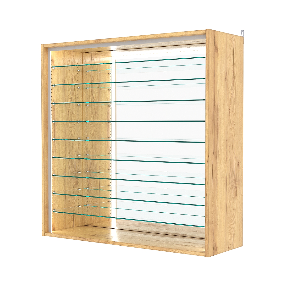Витрины настенные представляют собой отличный вариант качественных, а главное лёгких конструкций. Собираются в течение 30 минут, монтируются на любую вертикальную поверхность. Специальных навыков при сборке не требуется. Отлично подходят для демонстрации мелких товаров, таких как: бижутерия, брелоки, модели машинок, статуэтки и прочая сувенирная продукция. Есть функция регулировки полок.