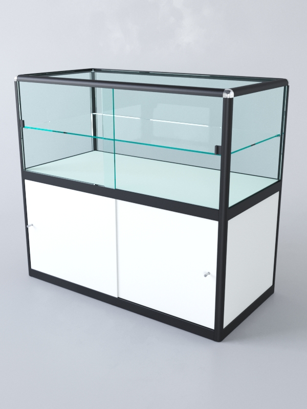 Прилавок из профиля прямоугольный №3 (с дверками), Белый+Черный