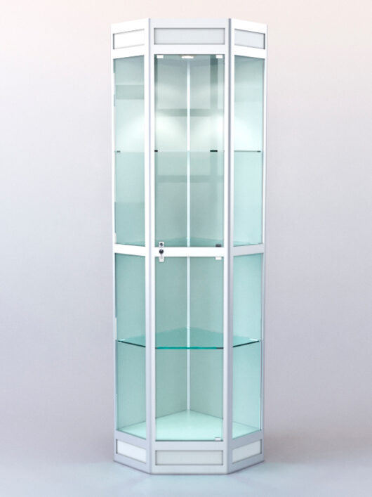 Распашная стеклянная дверка с замком в верхней и нижней секциях.