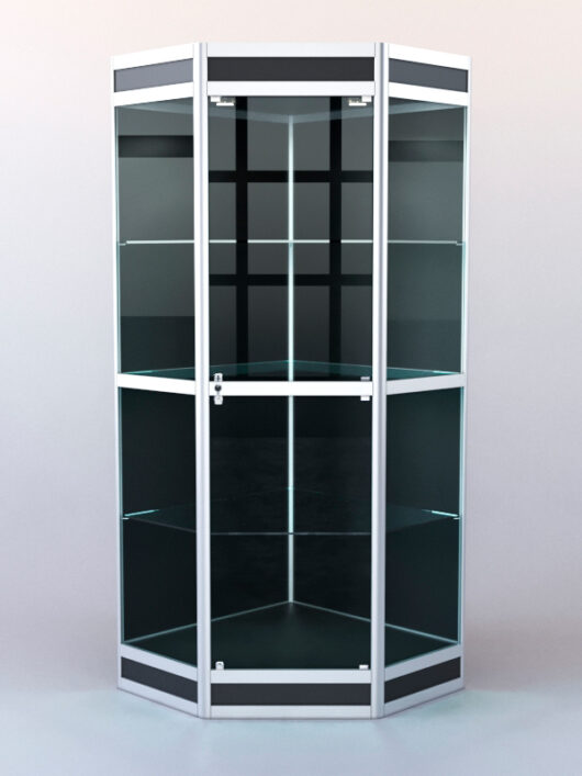 Распашная стеклянная дверка с замком в верхней и нижней секциях.