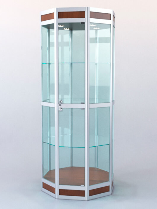 Распашная стеклянная дверка с замком в верхней и нижней секциях.