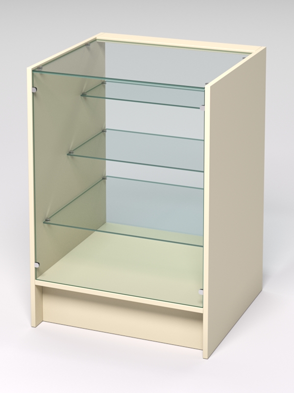 Изделие оснащено внутри тремя полками, где можно разместить товар для демонстрации. Полки из стекла.