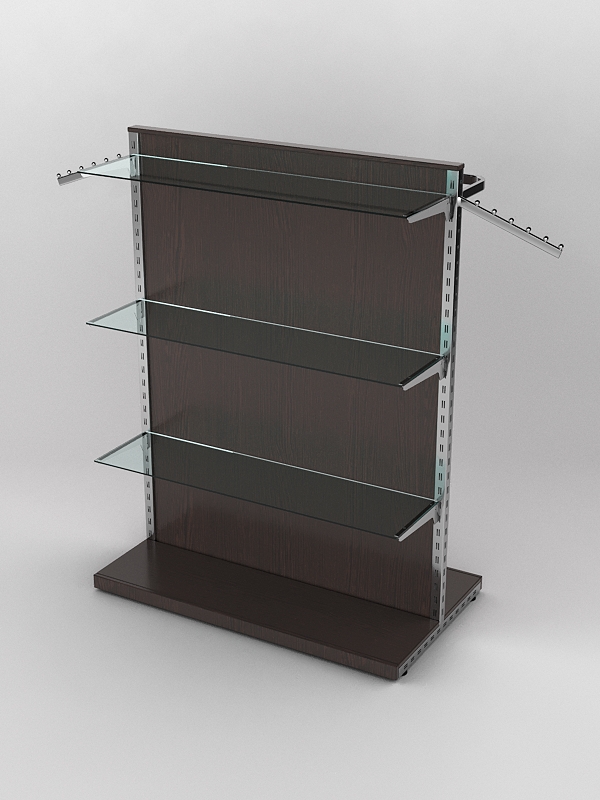 В комплект островной системы «Элегант» с ДСП №6 (1200мм) входят: две стеновые панели Элегент, два подиума, один П-образный поручень, три прямоугольные полки СТЕКЛО 6мм размером 1200х300мм, две Т-образных стойки Элегант 1560мм. Имеется возможность навешивать дополнительные кронштейны по боковым граням стойки, тем самым увеличивая функциональность системы.