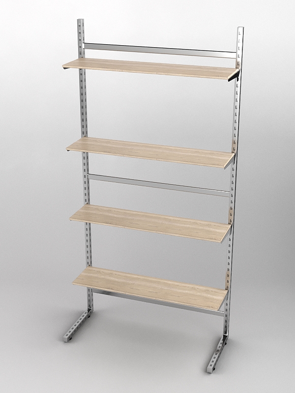 Система «Элегант» — представляет собой стальные перфорированные L-образные стойки длиной 2400мм, сечением трубы 38х38мм с фурнитурой. Стойки скрепляются между собой через определенные расстояния металлическими стяжками. Специализированная фурнитура представляет собой крючки, кронштейны, поручни и полкодержатели, которые вставляются в пазы стоек. Высота и ширина текущей конструкции может быть уменьшена, либо увеличена по желанию заказчика. Также возможен вариант размещения зеркальных или ЛДСП панелей, или экономпанелей между стойками, что позволит придать помещению эксклюзивный вид.