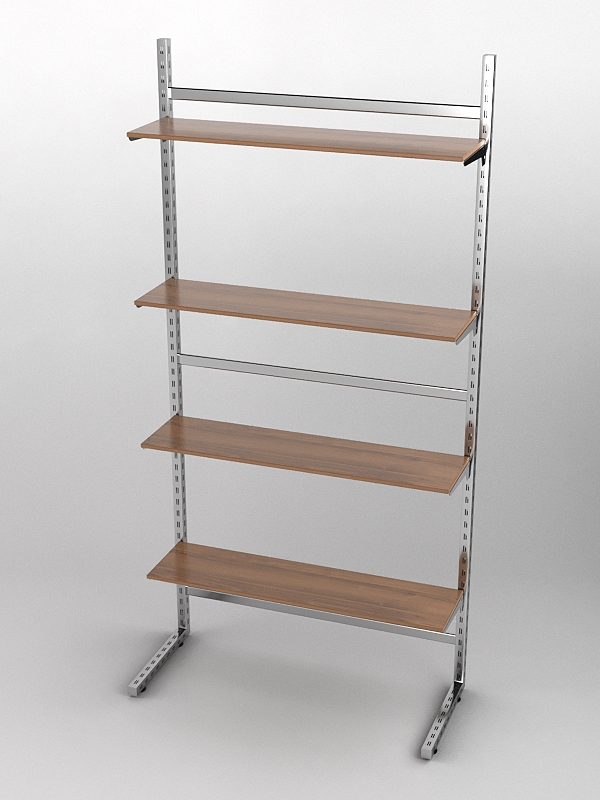 Система «Элегант» — представляет собой стальные перфорированные L-образные стойки длиной 2400мм, сечением трубы 38х38мм с фурнитурой. Стойки скрепляются между собой через определенные расстояния металлическими стяжками. Специализированная фурнитура представляет собой крючки, кронштейны, поручни и полкодержатели, которые вставляются в пазы стоек. Высота и ширина текущей конструкции может быть уменьшена, либо увеличена по желанию заказчика. Также возможен вариант размещения зеркальных или ЛДСП панелей, или экономпанелей между стойками, что позволит придать помещению эксклюзивный вид.